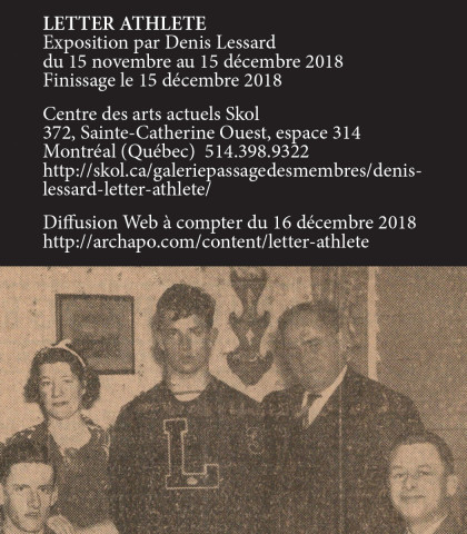 Dans Letter Athlete, Denis Lessard retrace les ramifications entourant deux documents d’archives dont il a hérité, le temps d’une trentaine de courtes capsules vidéo, en conversation avec Michel Belisle, à la suite d’un processus de discussion avec des ami.e.s, des parents et des collègues artistes, travailleurs culturels et archivistes. Il est question d’un écrivain américain célèbre aux racines québécoises, de souvenirs de famille, de traduction, de coupures de presse et d’un voyage au Massachusets…